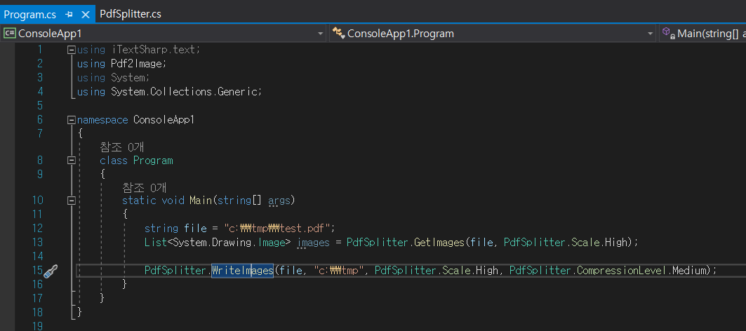 C:\tmp 위치에 test.pdf 파일명으로 두고 컴파일 후 생성된 ConsoleApp1.exe 파일을 실행하면 된다.