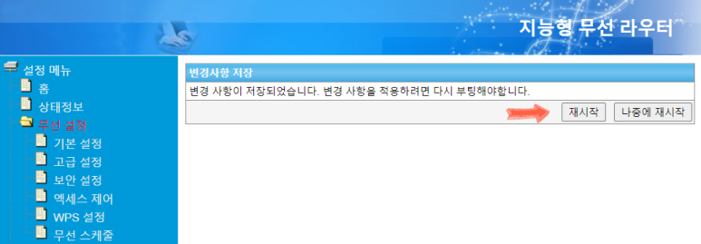 설정 적용을 누르면 아래와 같은 "변경사항 저장" 메시지가 나타난다.