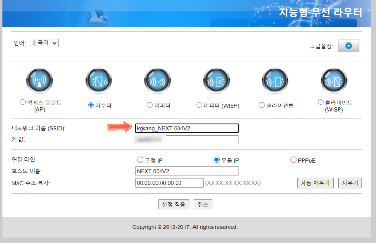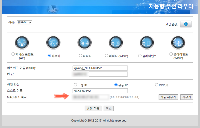 이제 마지막으로 공유기의 MAC 주소를 변경한다.