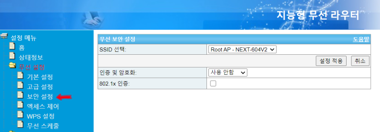 무선만 쓰니까 무선 보안을 설정하기 위해 오른쪽 위의 고급설정 선택.