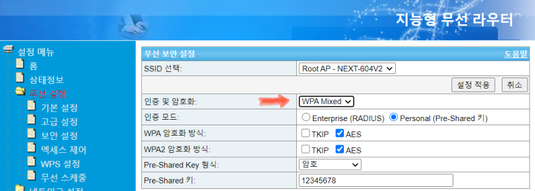 나머지는 위와 같은 설정을 하고 Pre-Shared 키에 설정할 암호를 입력한다.