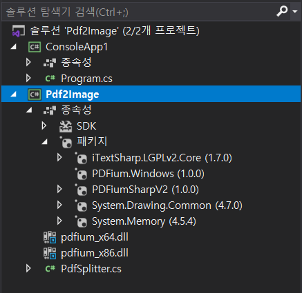 PDFiumSharpV2 를 검색하고 설치. >> 확인.