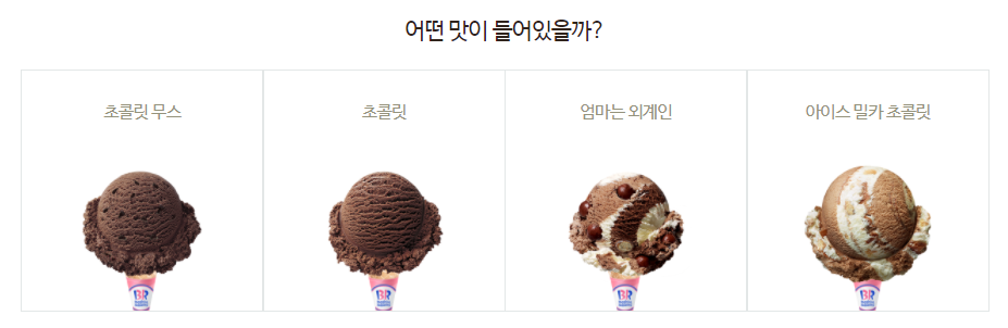 그냥 한 가지 맛만 있는 줄 알았는데 아래의 다양한 초컷릿 맛이 들어 있는 것이였구나~