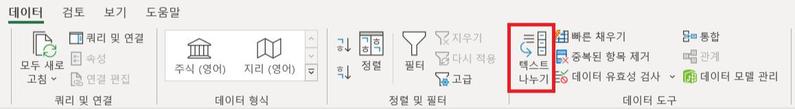 데이터 메뉴 내의 텍스트 나누기를 선택한다.