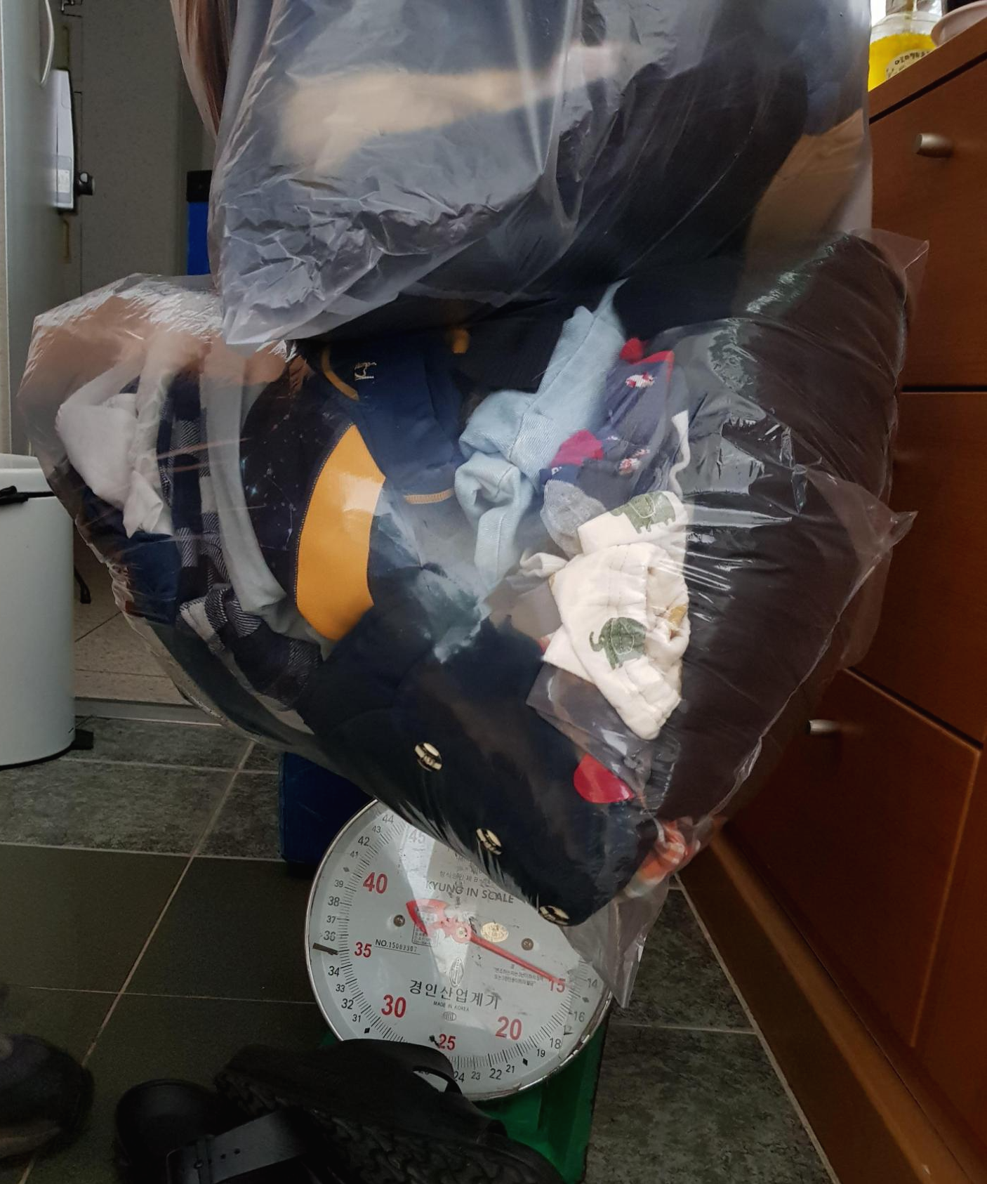 전세계약이 만기되어 다음달에 이사가기 위해 집 정리하고 나온 헌옷.