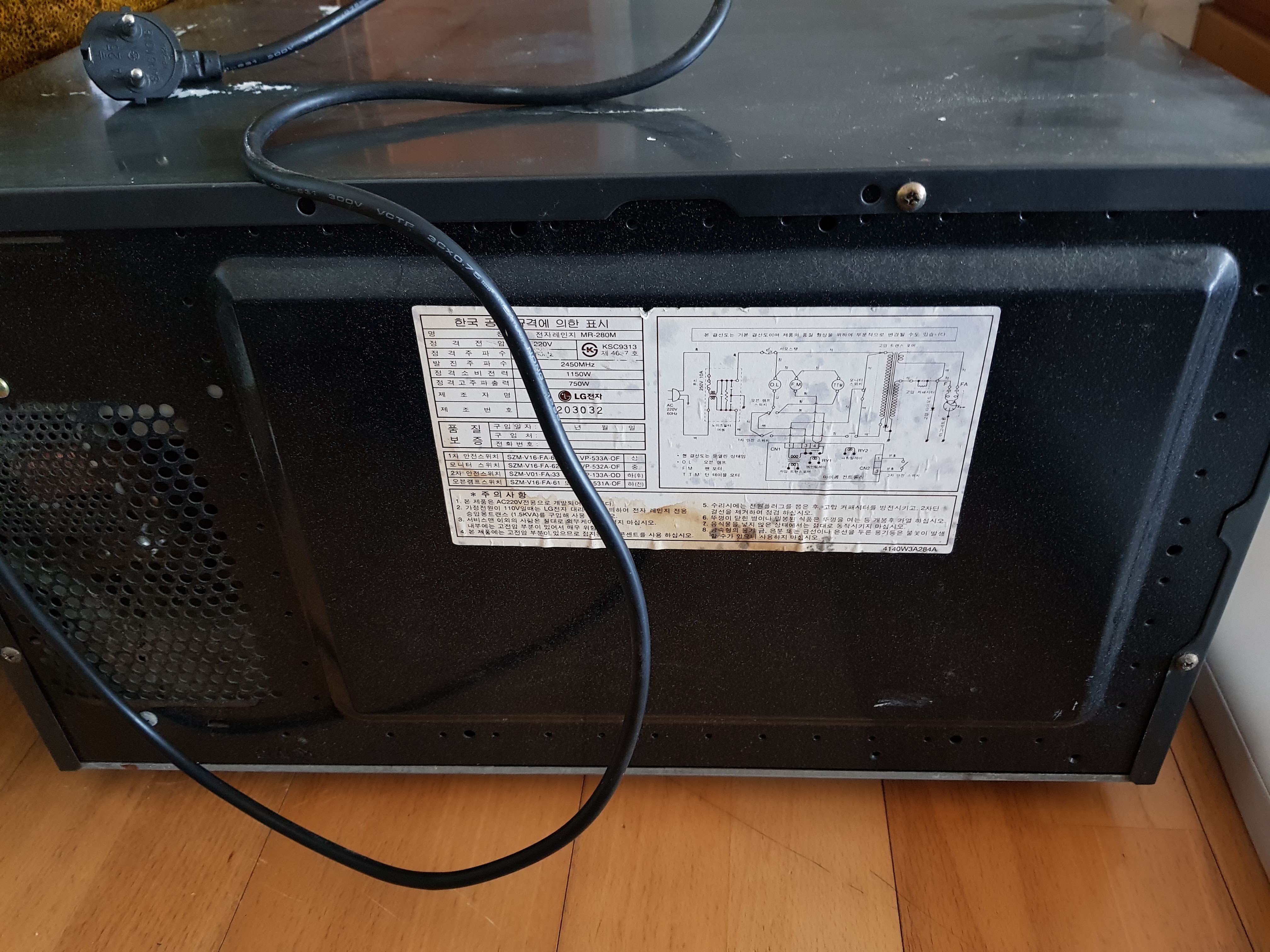안쓰는 전자랜지. 버려야지 하면서 수거업체에 연락하지 못 했던 것을 이제야 버리게 되었다.