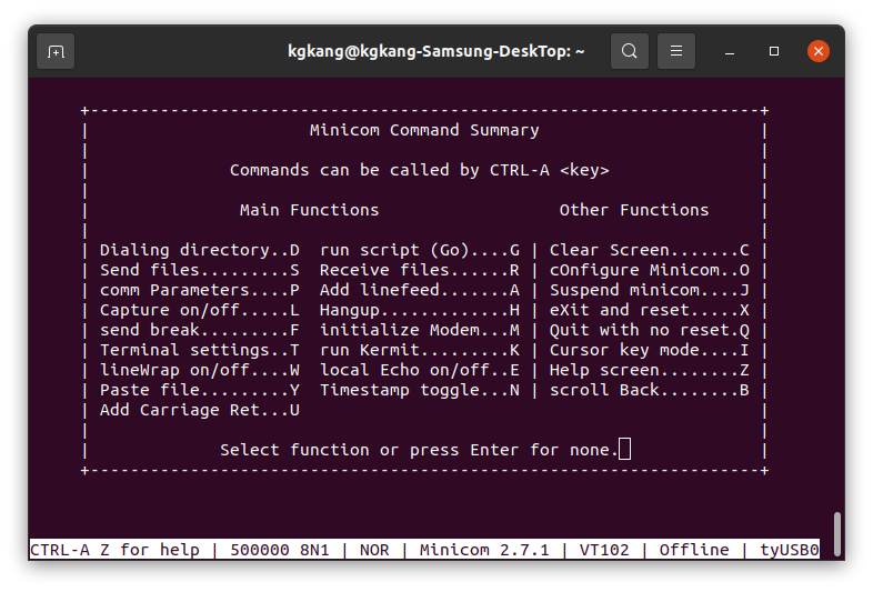Yes를 선택하면 minicom이 종료되고 우분투 터미널로 돌아온다.