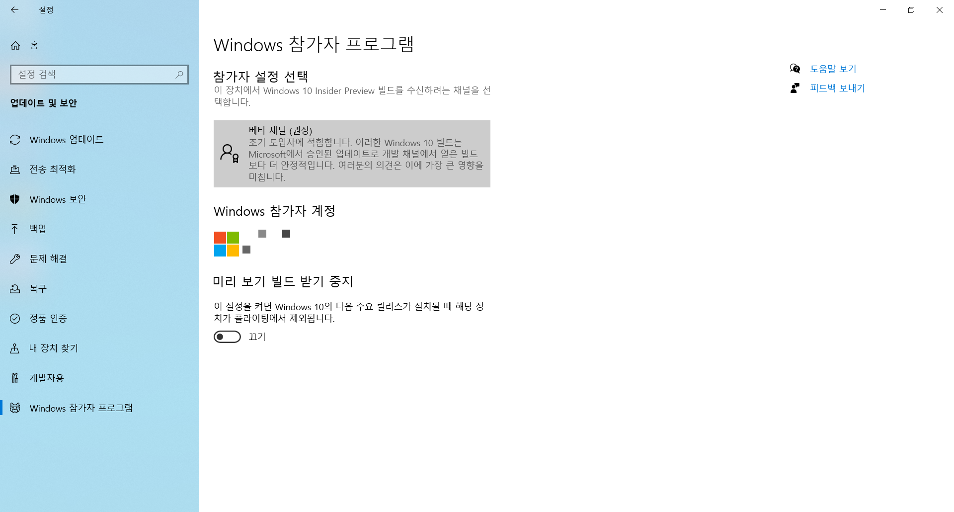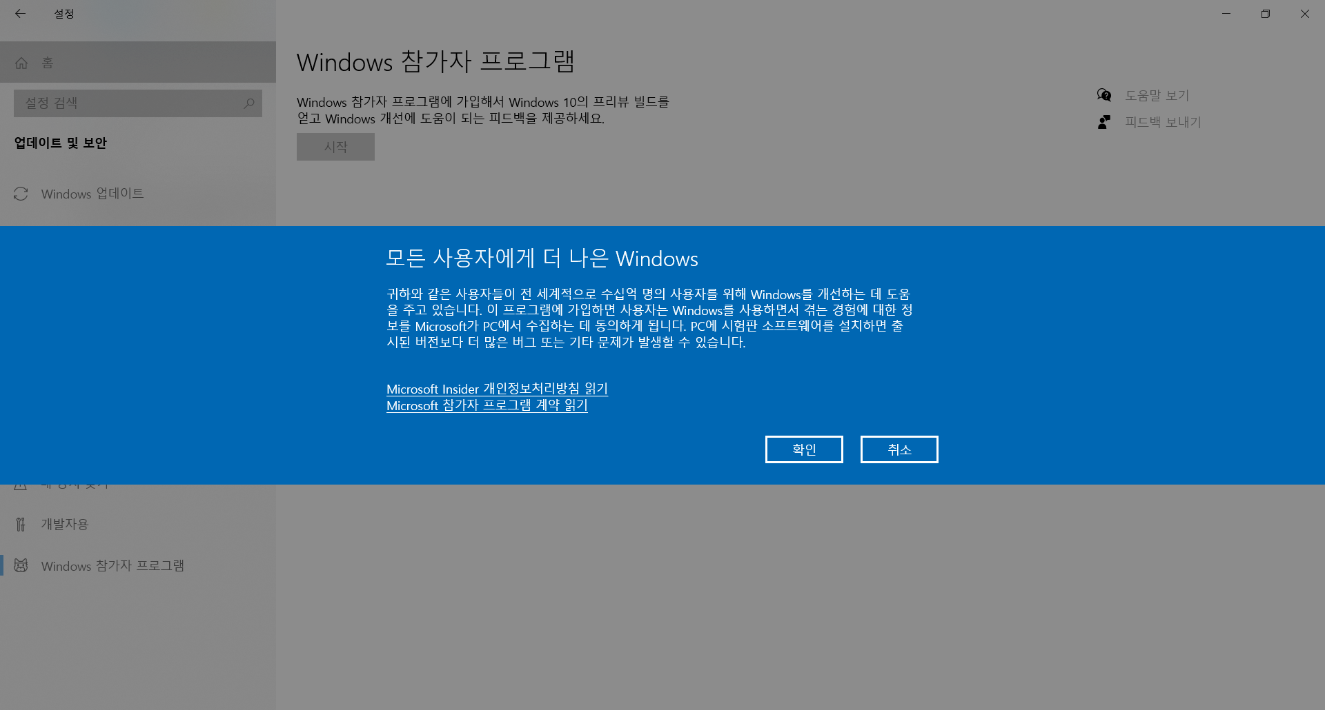 Windows 참가자 프로그램에 참여
