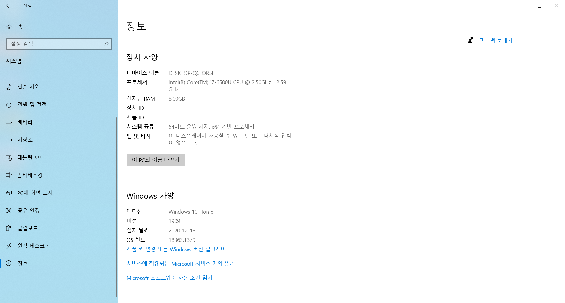 버전 20H2 설치가 완료되고 리부팅.