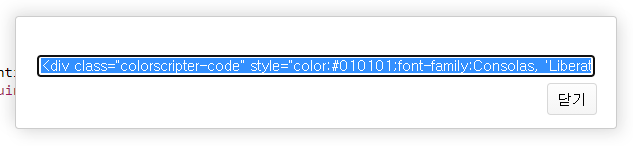 Color Scripter로 복사된 코드의 첫 부분과 끝 부분에 <code> ... </code> 태그를 추가한다.