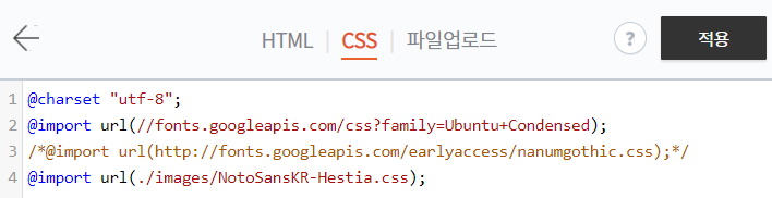 스킨 편집 으로 들어가서 CSS 부분을 수정한다.
