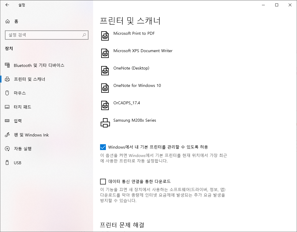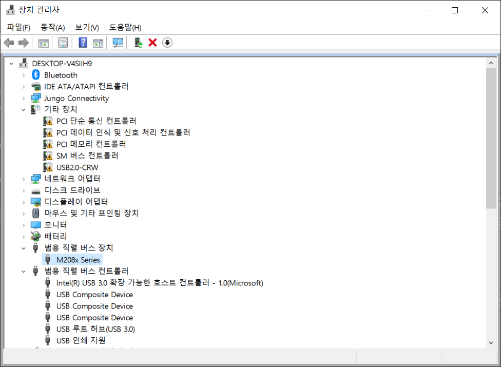 장치관리자에서 USB로 M208x Series가 인식된 것이 확인 된다.