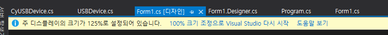 100% 크기 조정으로 Visual studio 다시 시작을 매번 하고 있었다.