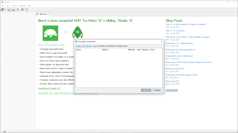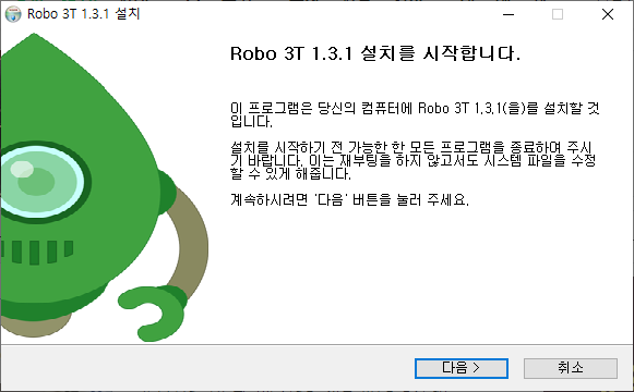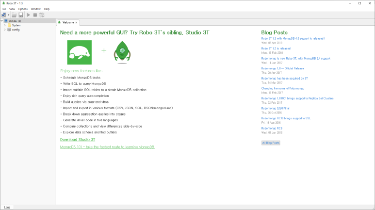 MongoDB를 위한 Robo 3T 설치. (MongoDB GUI)