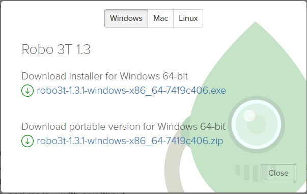Download Robo 3T only 선택.