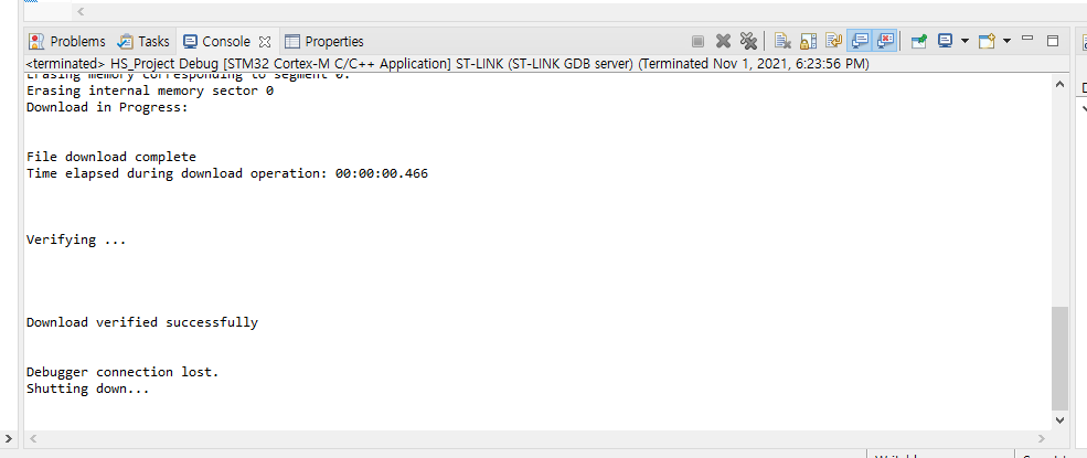 Shutting donw... 상태에서 끝나는데 Board는 정상 동작한다.