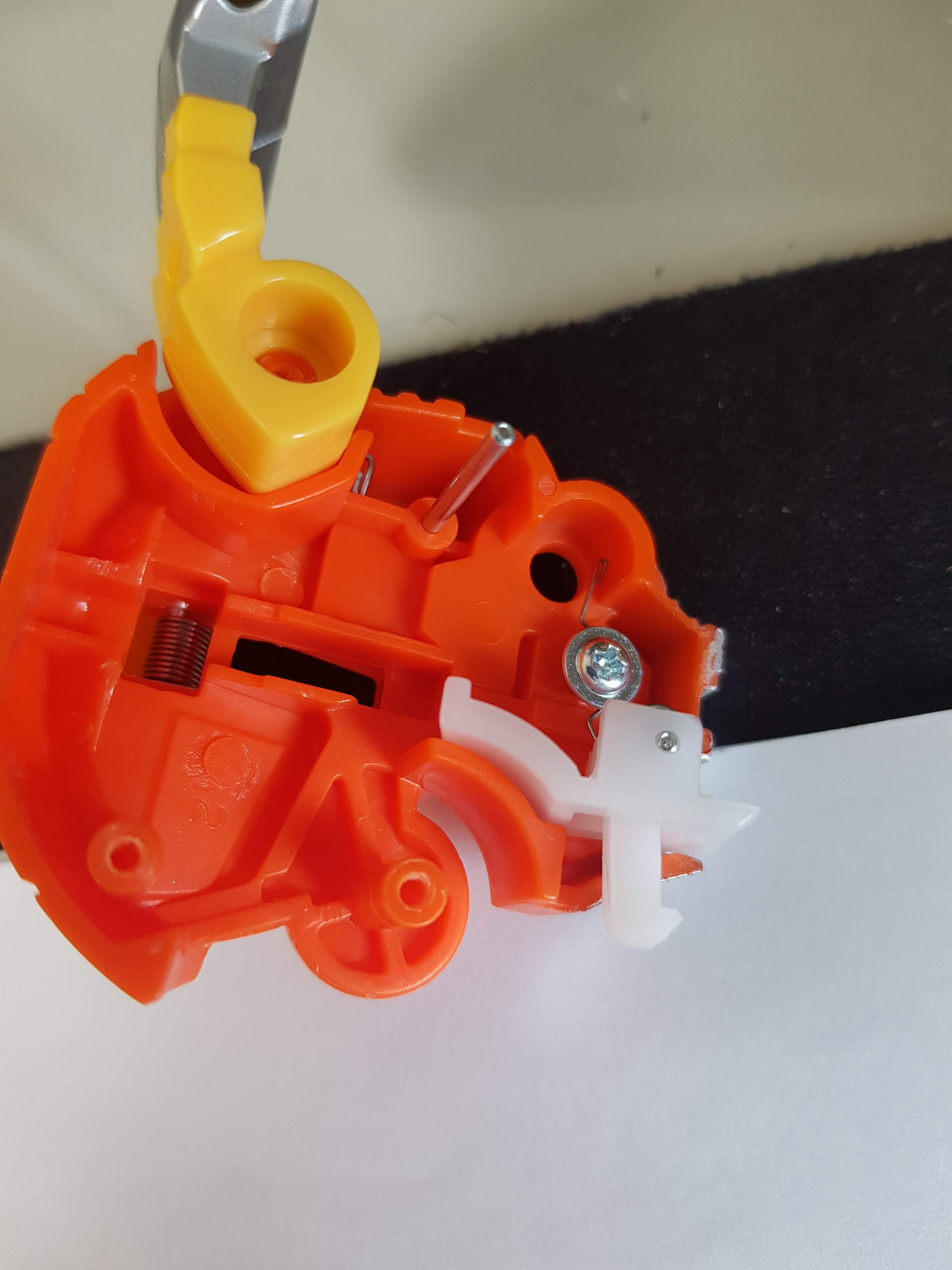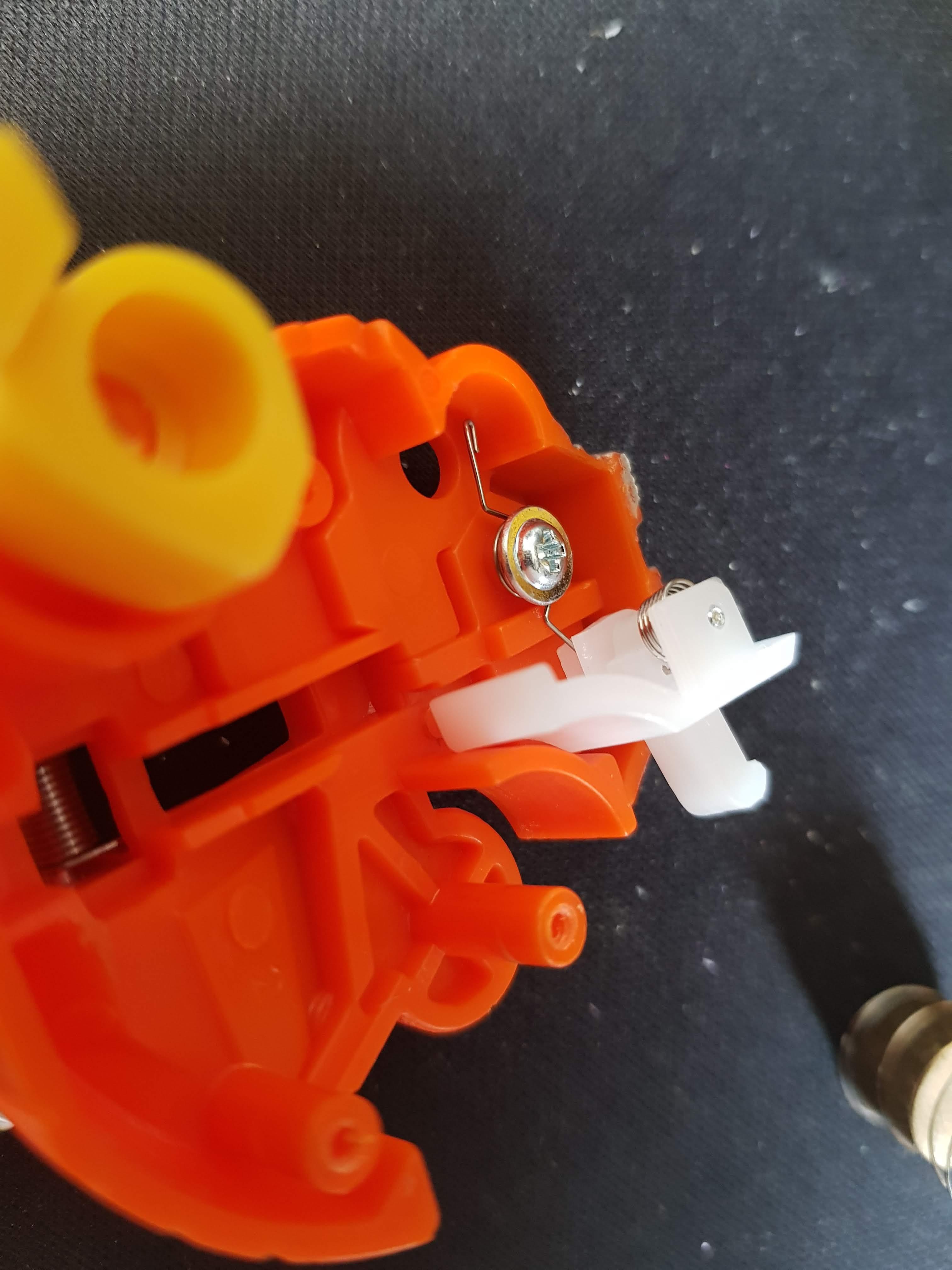 몸체의 나사를 풀고 분해했다. 역시나 빠져 있는 스프링과 무게추.