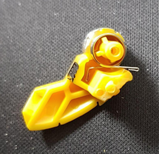가운데 샤프트와 꼬리 고정 부품. 스프링 맞추고 이것을 잡으면서 반대측 몸통을 조립해야 한다.