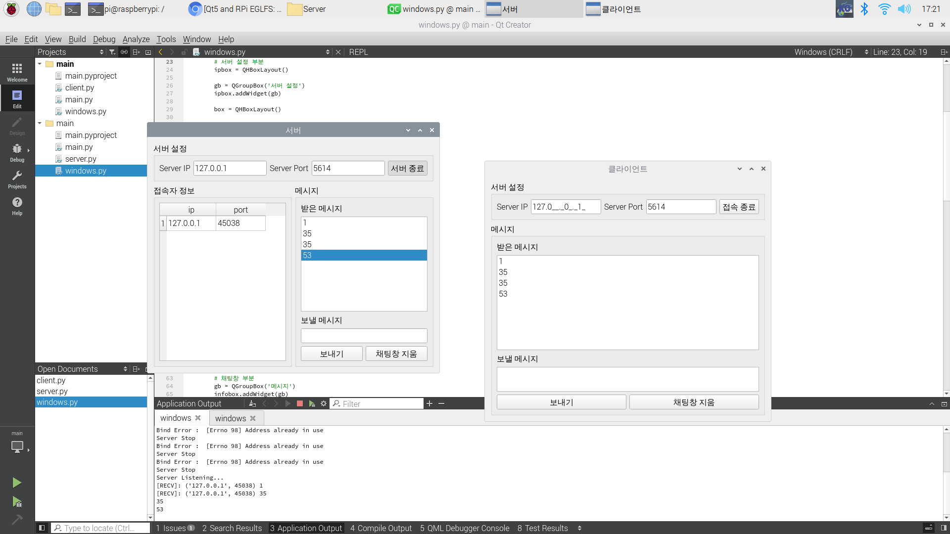 라즈베리파이를 이용한 python 소켓 프로그램.