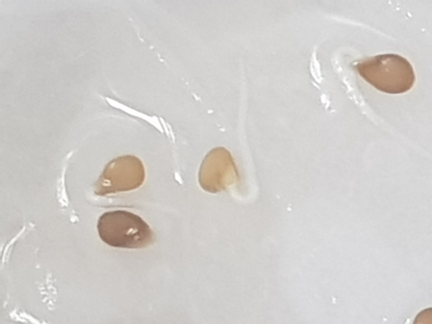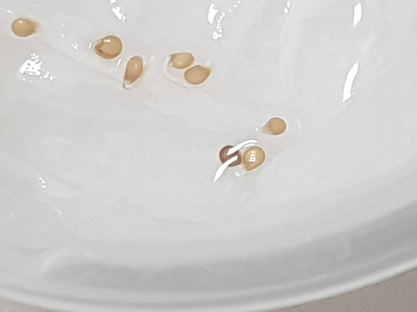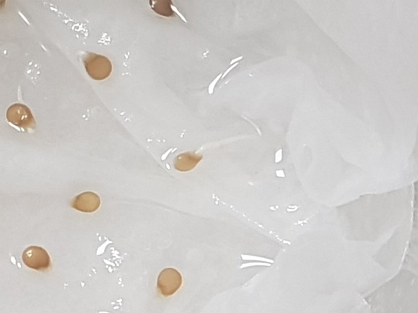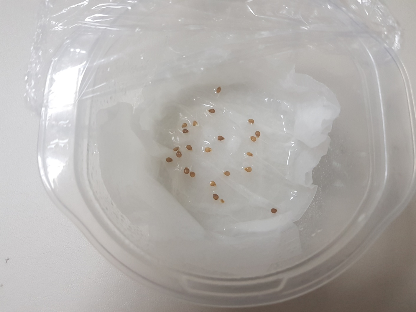 말린 씨앗을 아래와 같이 물에 적신 휴지 위에 누고 랩을 씌운뒤 랩에 구멍을 낸다.