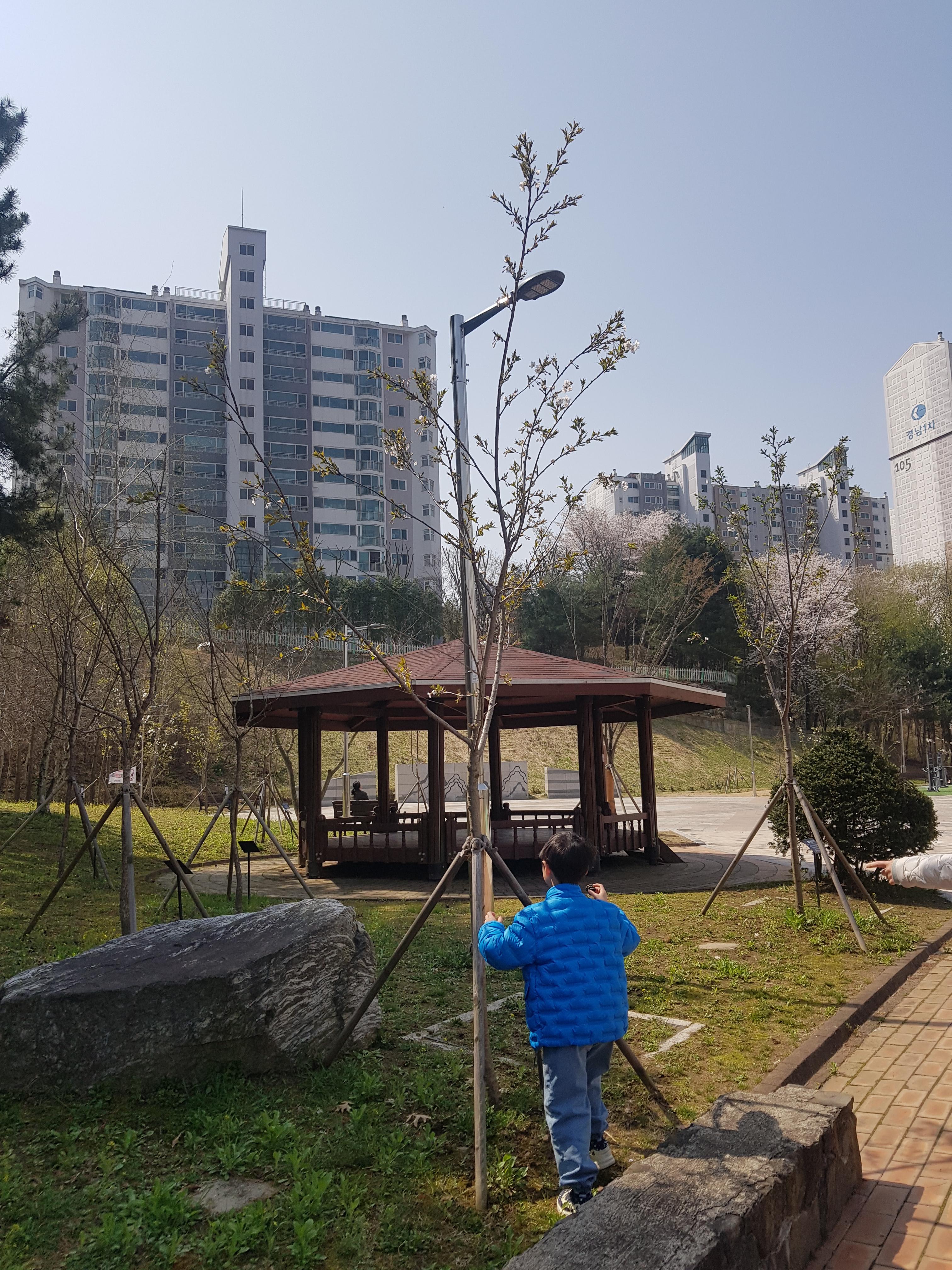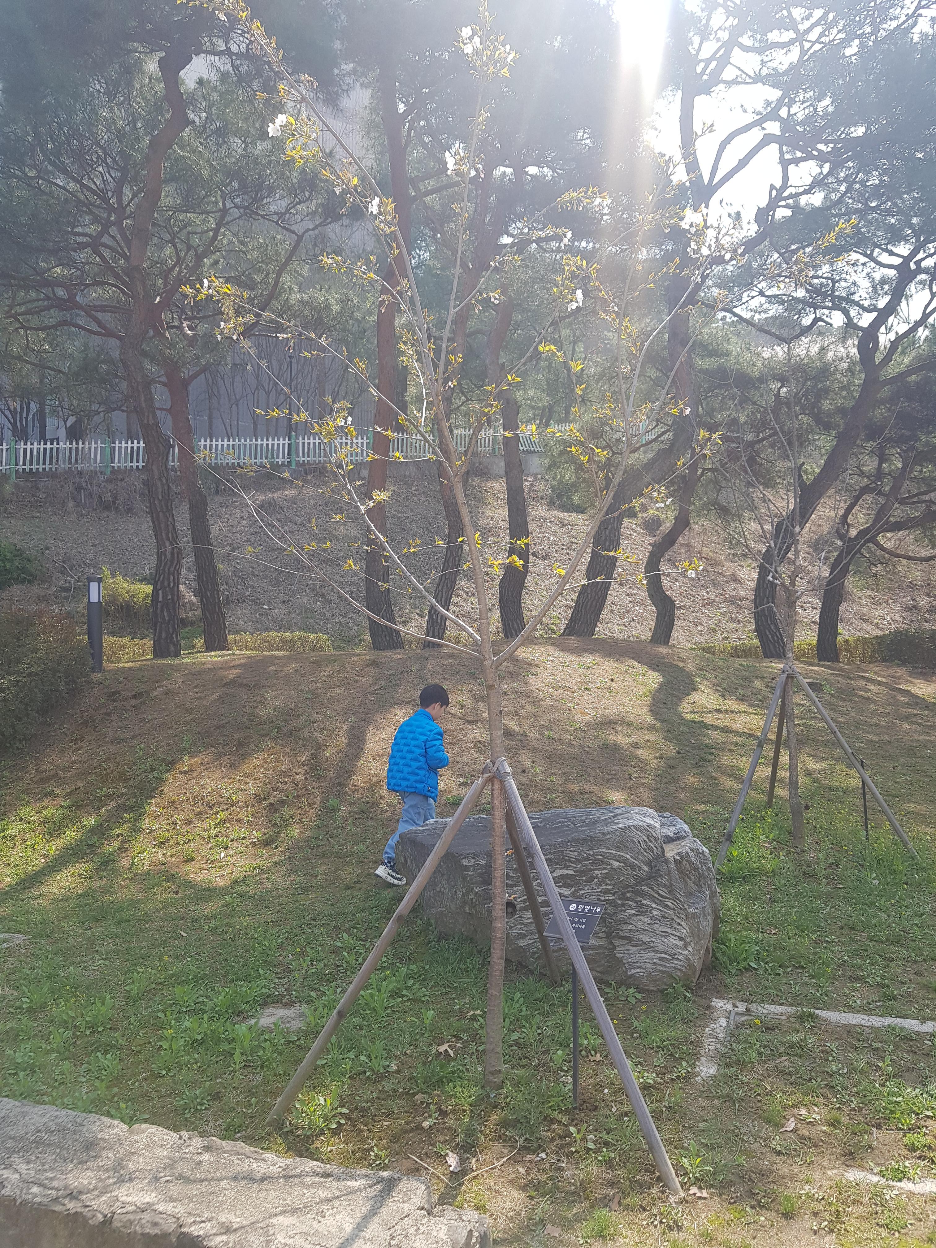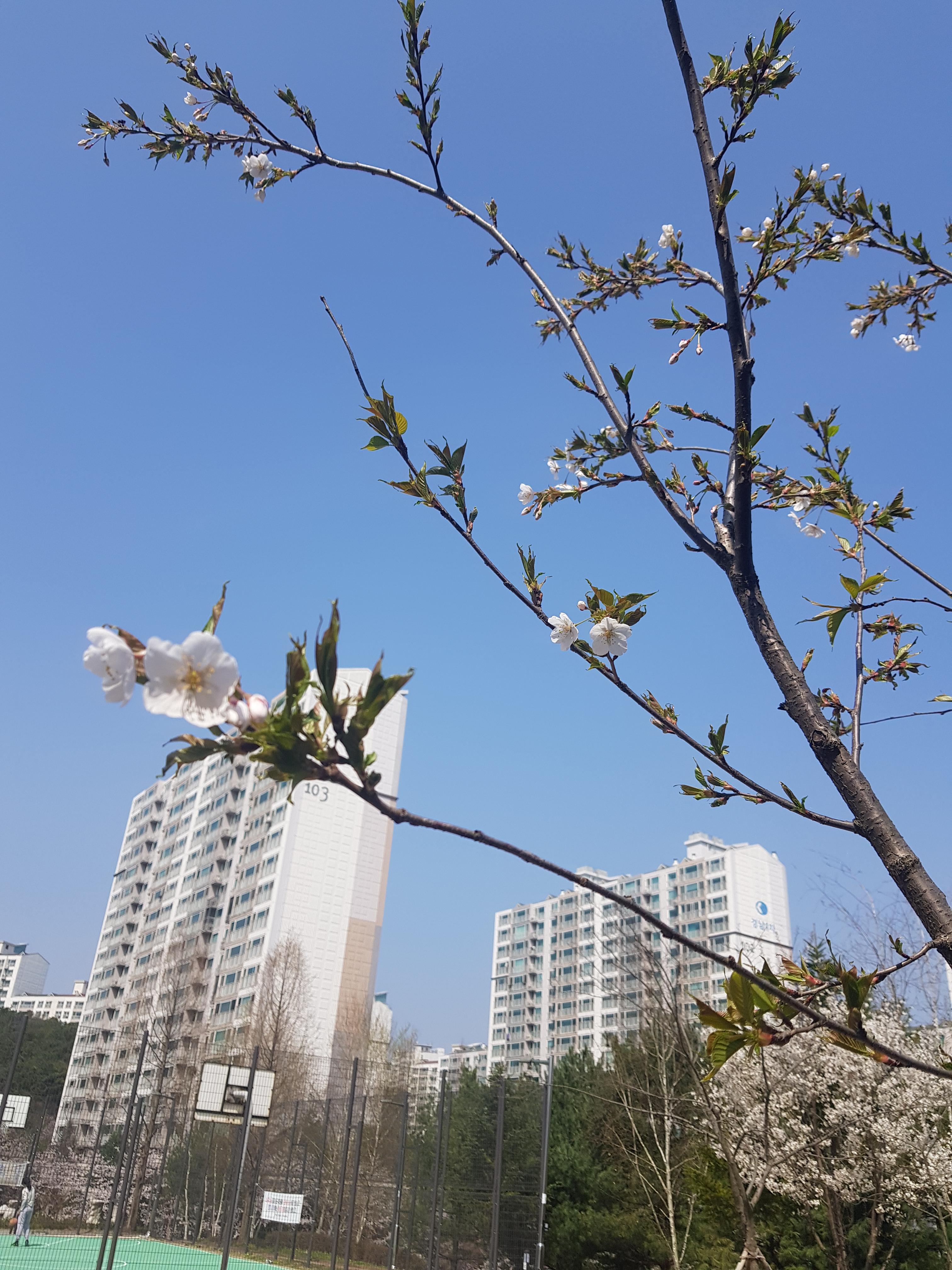 1년전 앙상했던 나무가지가 조금 더 늘어나고 조금이지만 벚꽃도 피었다. ^^