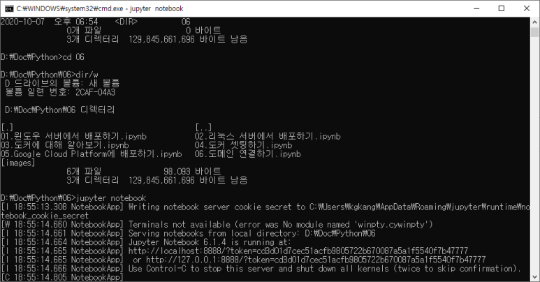 # 2. 명령프롬프트 상태에서 쥬피터노트북 압축 해제된 폴더에서