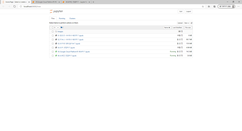 위와 같은 메시지가 뜨면서 쥬피터 노트북이 실행되고 강의 자료가 열린다.