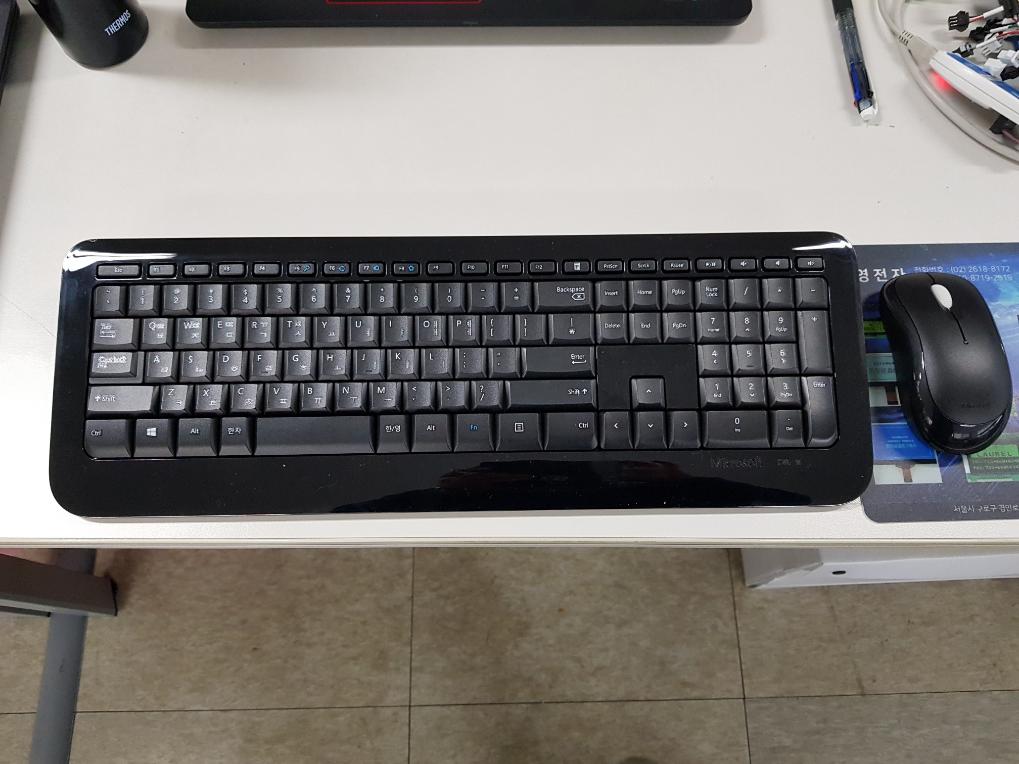 새로 구매한 마이크로소프트 무선 마우스 키보드 세트.