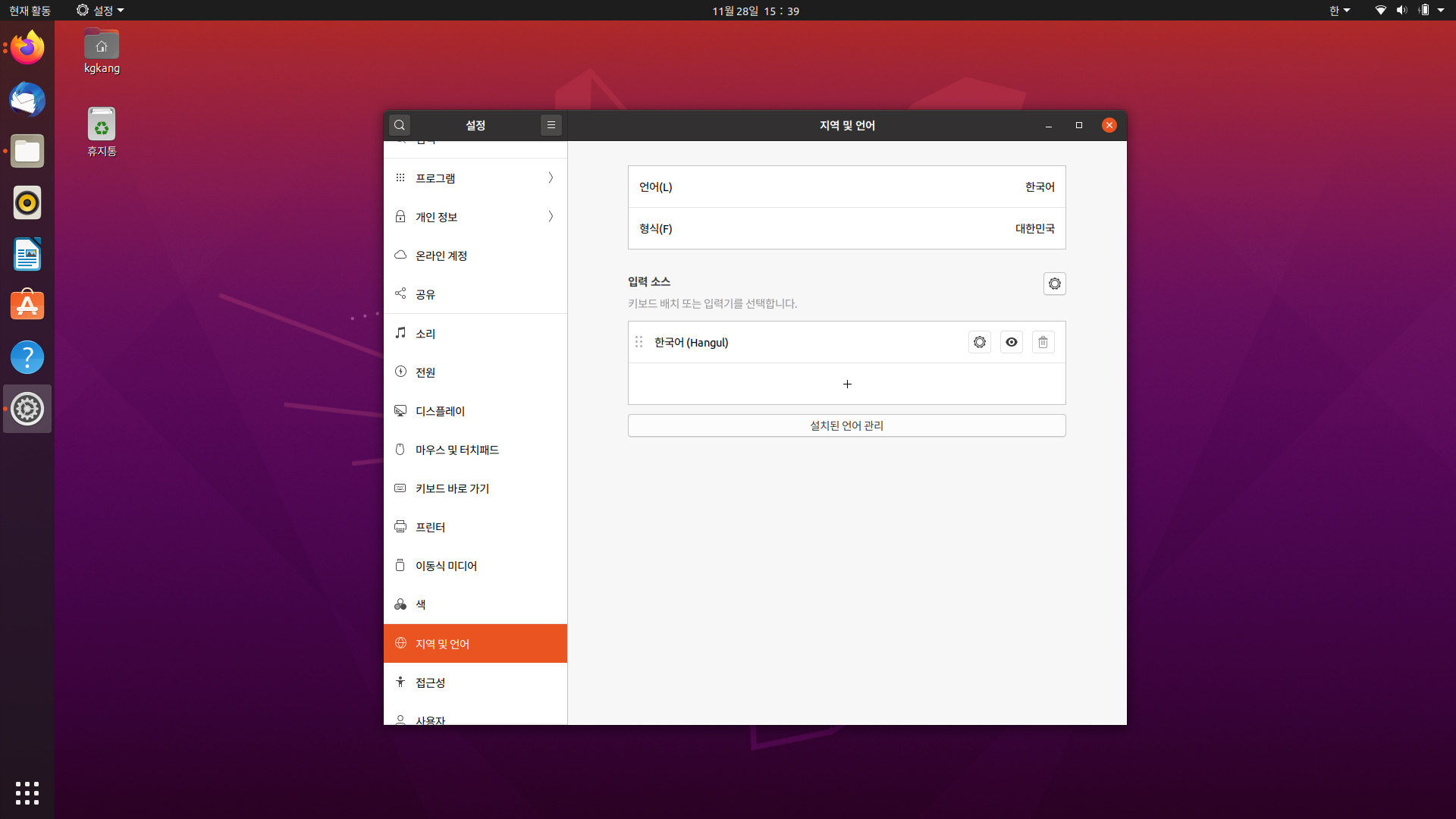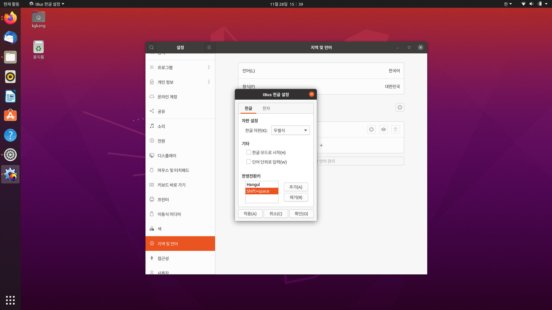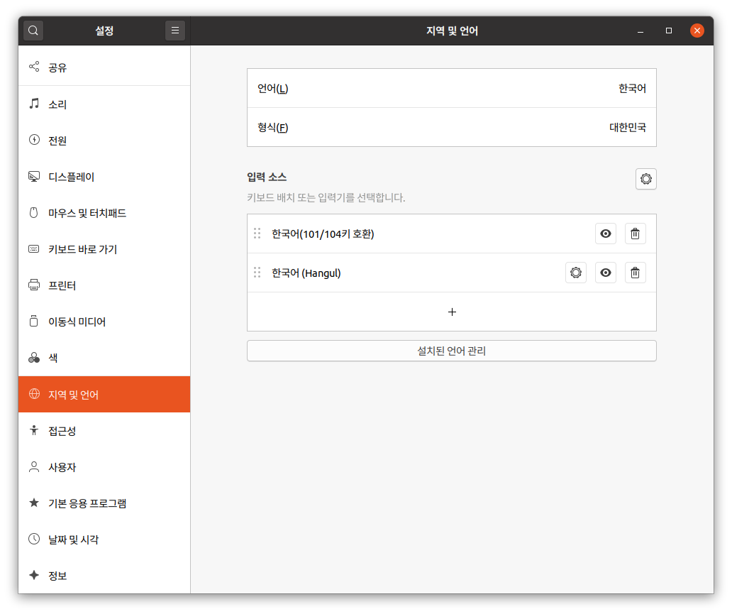 우분투 한글 입력 설정 (우분투 20.04)