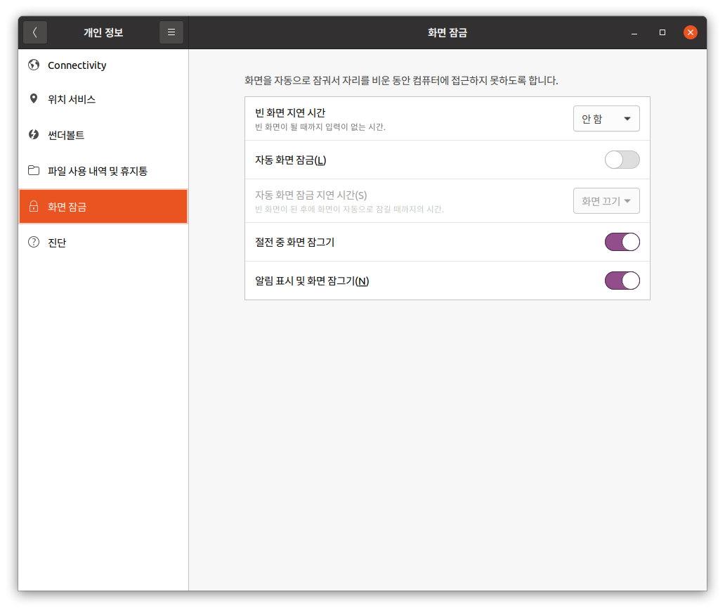 작업을 하다가 잠시 다른일을 하다가 돌아오면 잠겨 있는 화면.