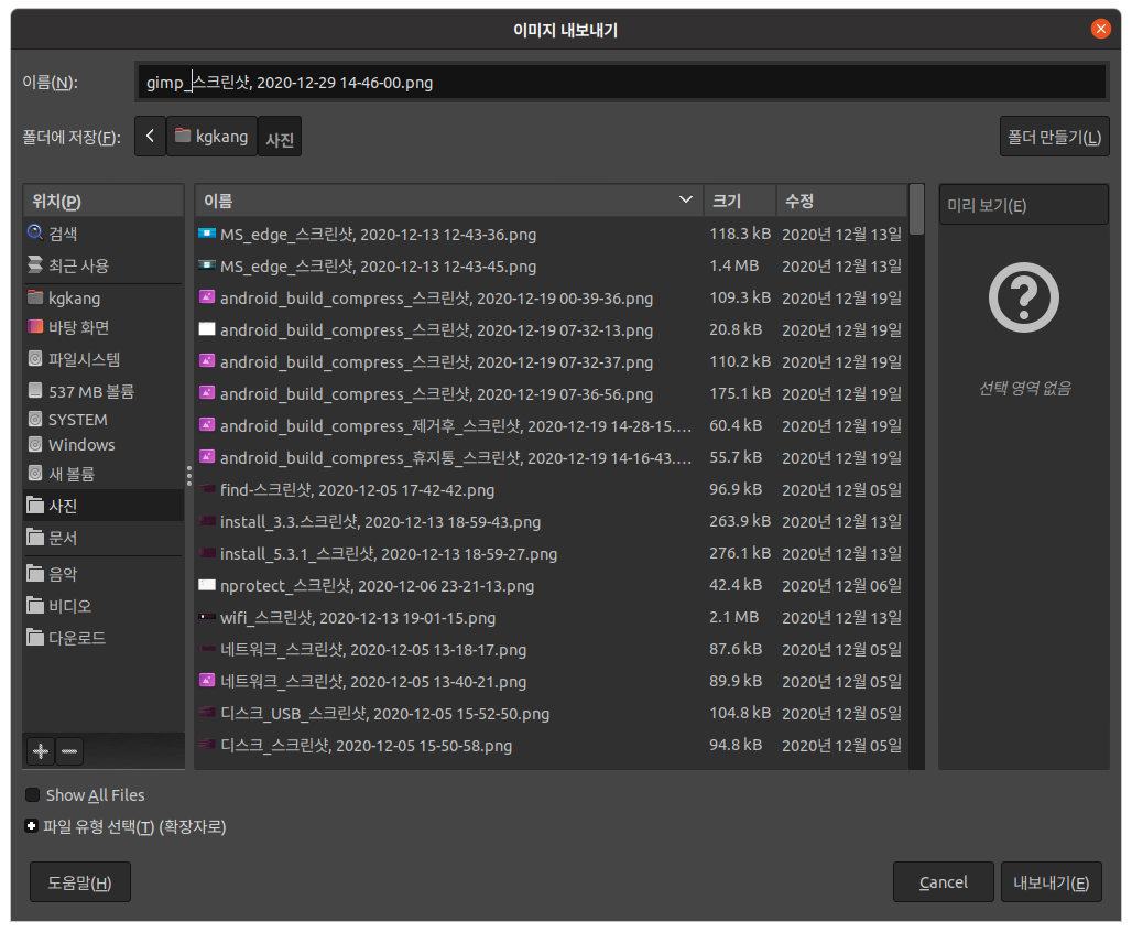 다른 이름으로 저장하려니 파일 유형이 xcf 로 된다.