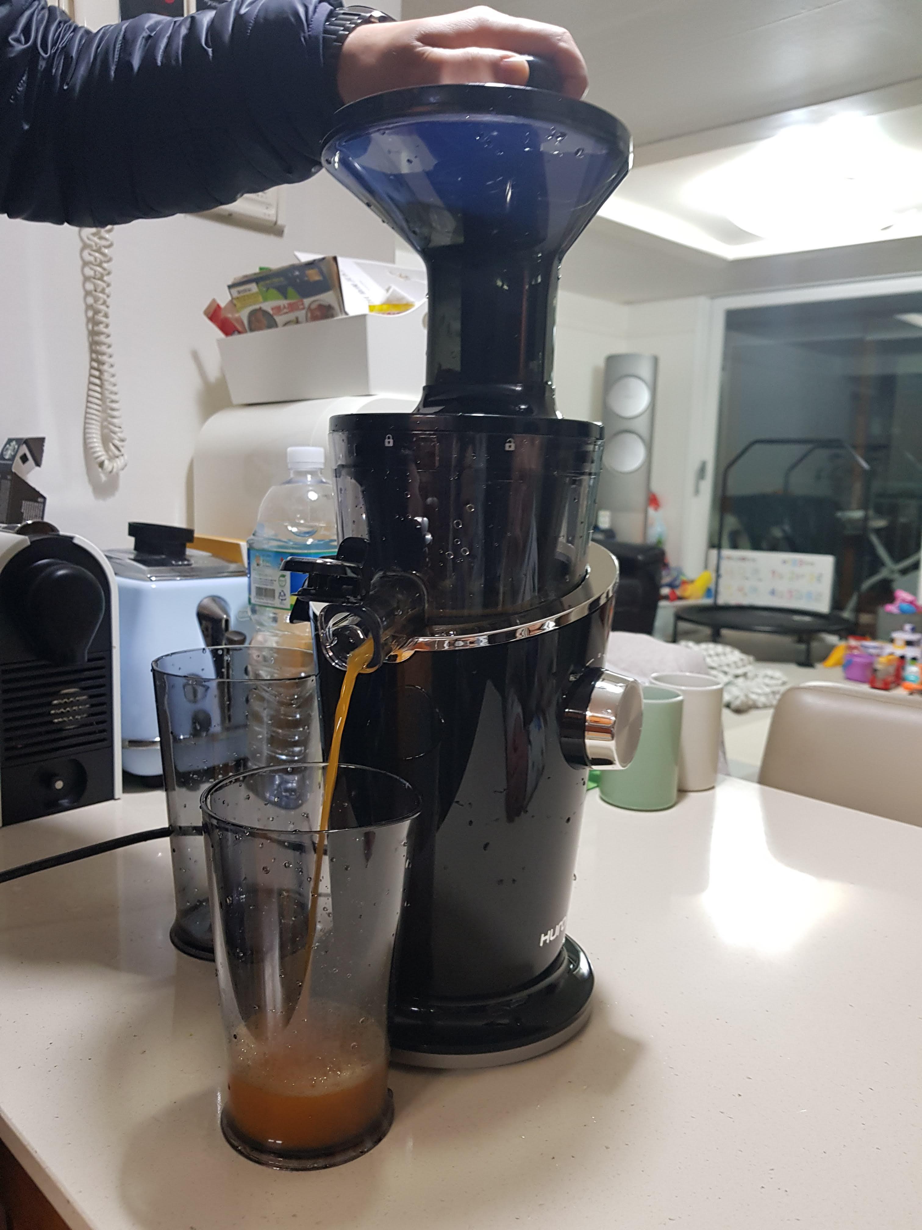 아쉬운 것은 착즙이 끝나는 시점을 알려 주었으면 좋겠다. 조용하게 돌아가기는 하는데 한, 두 방울씩 꾸준히 조금씩 나온다.