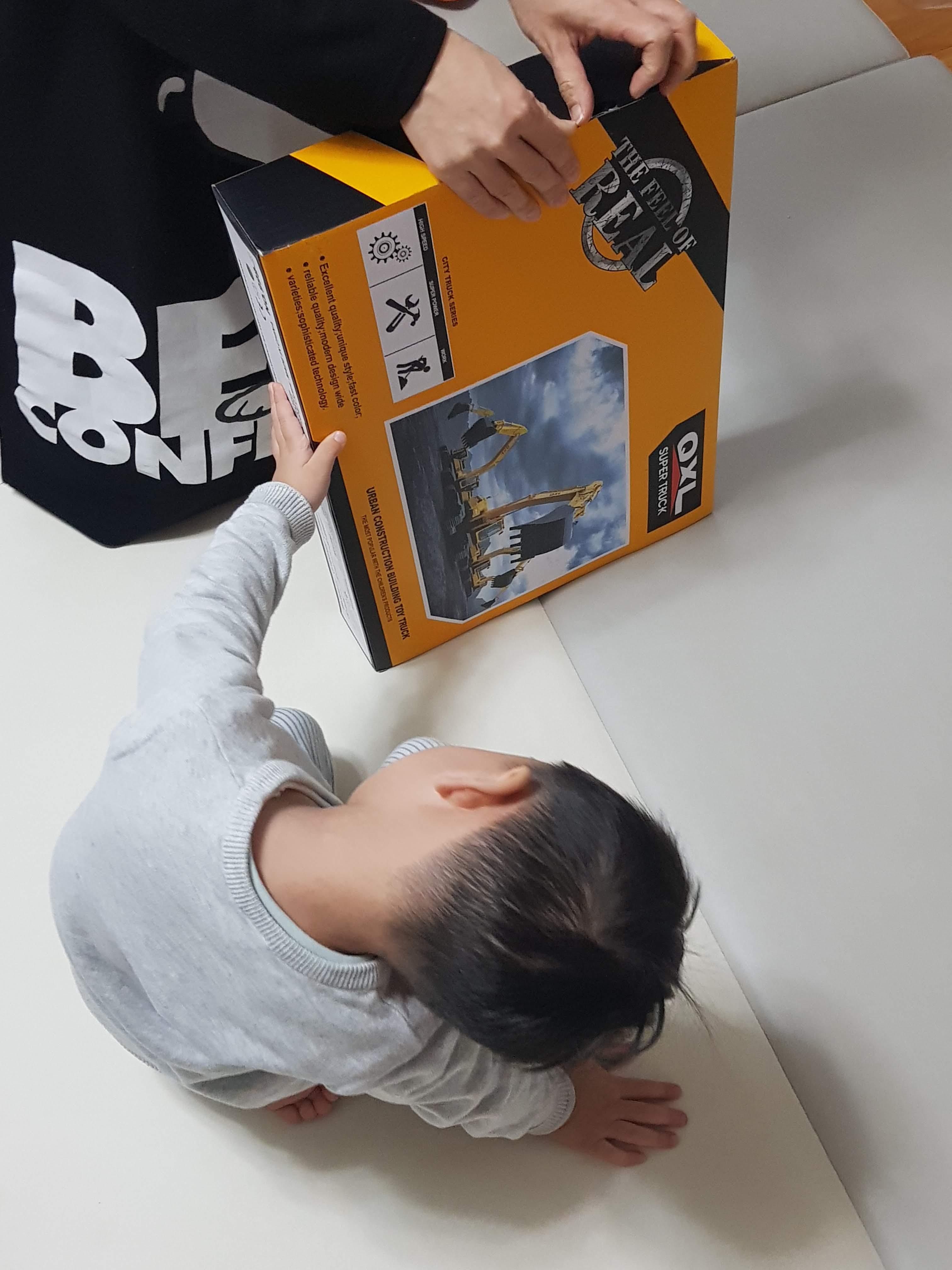 생일날 중장비 세트를 받고 좋아하는 민승이~