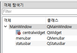 2. MainWindow : QMainWindow 클래스를 사용하고 menubar와 statusbar가 포함되어 있다.
