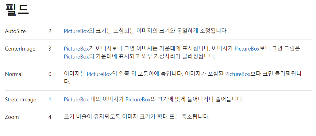 PictureBoxSizeMode 열거형 (System.Windows.Forms)