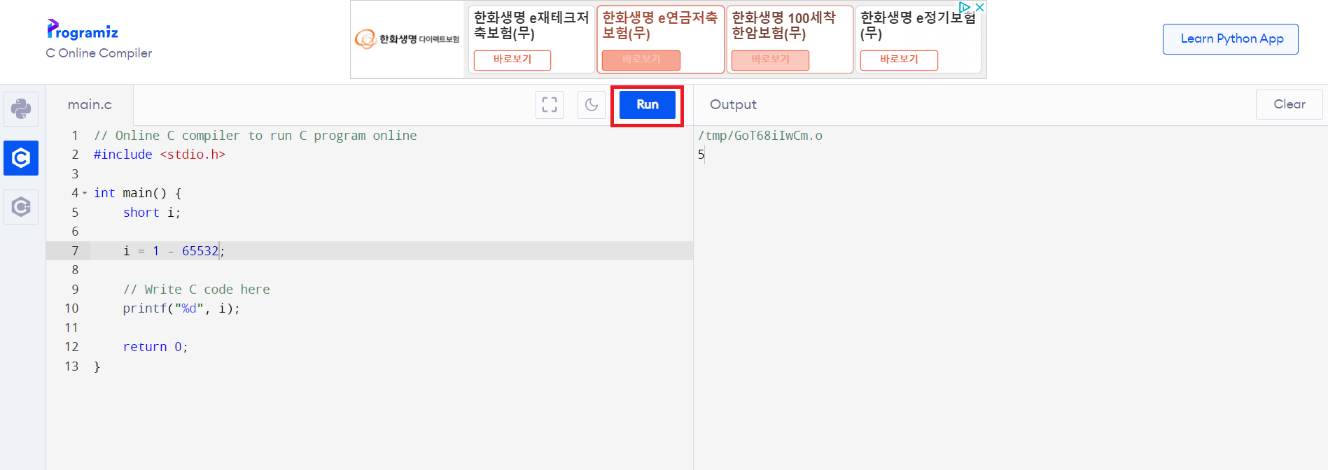 간단한 코드는 온라인 컴파일러로 확인이 가능한 세상이다.