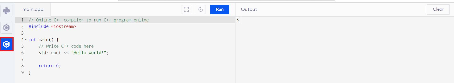 왼쪽 제일 아래 버튼은 C++ 이다.